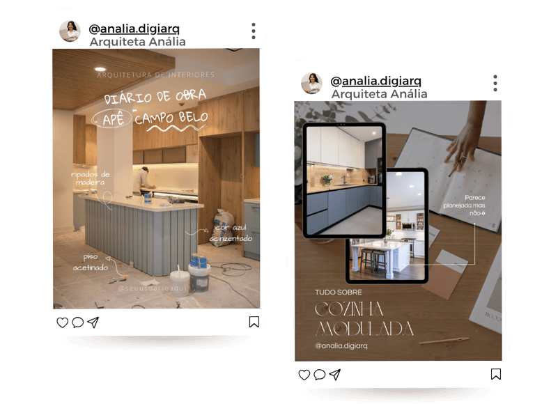Conteúdos prontos, editáveis e pensados para valorizar seu portfólio e sua marca pessoal.